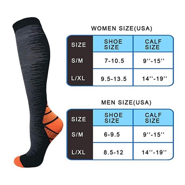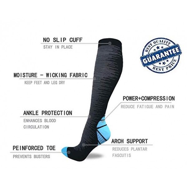 Breathable high performance fabric keeps an optimal temperature. Breathable fabric wicks moisture away from your skin to ensure you feel fresh and comfortable. These compression socks can prevent cramping, fatigue, swelling and helps in muscle recovery, varicose veins. Help prevent Blood clots after surgery.