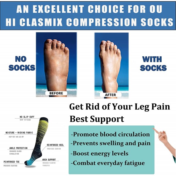 - ✅QUALITY AND COMFORT – Breathable high performance fabric keeps an optimal temperature. Breathable fabric wicks moisture away from your skin to ensure you feel fresh and comfortable. These compression socks can prevent cramping, fatigue, swelling and helps in muscle recovery, varicose veins. Help prevent Blood clots after surgery.