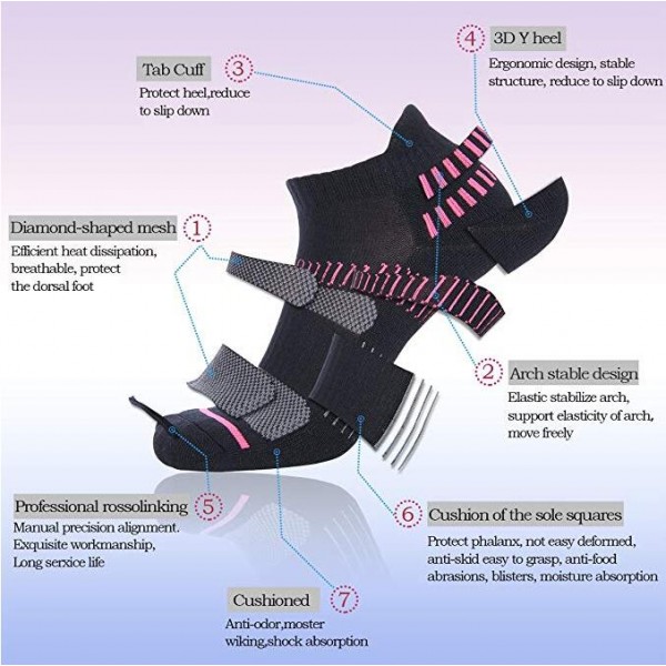 * Anti-blister Cushioning and Compressive Arch Support: No show cushion padded socks can make feet comfort and relaxed (absorb impact and relieve foot fatigue) to promise no blisters after long time work. Compression arch support keeps runners’ arch stable and secure fit, reducing fascia fatigue while running
