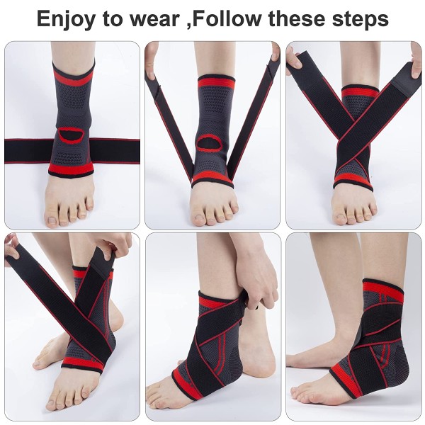 ADVANCED COMPRESSION TECHNOLOGY: Compression in each ankle sleeve helps to support and provide stabilization to the ankle. Our ankle support braces hug protectively your ankle, exerting compression on the heel, arch and ankle, and toes, minimizing the risk of injuries while you walk."