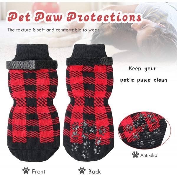 Anti Slip Dog Socks - Dog Gripping Socks with Straps Traction Control for Indoor on Hardwood Floor Wear, Pet Paw Protector for Small Medium Large Dogs L