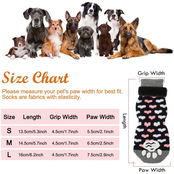 - COME IN 3 SIZES: Small girp width 1.7in, sock length 5.3in, paw width 2.1in. Medium girp width 1.7in, sock length 5.7in, paw width 2.5in. Large girp width 1.7in, sock length 6.2in, paw width 2.9in. Please measure your pet's paws carefully and choose the suitable one before ordering. If it is between the two sizes, it's better to choose the smaller size