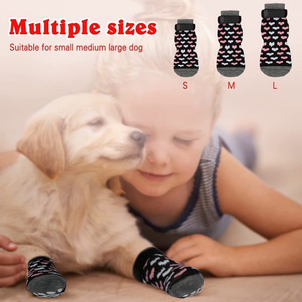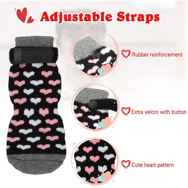 - FUNCTIONAL DESIGN: Firstly, extra elastic black loop fastener and grips design make your pet's paws tightly wrapped by the socks, fix it on the pet's feet all the time, never fall off easily. Besides, anti-slip silicon gel printed on the soles to provide extra traction, prevent your pet dogs from slipping and help them less inclined to fall