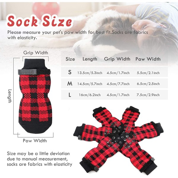Anti Slip Dog Socks - Dog Gripping Socks with Straps Traction Control for Indoor on Hardwood Floor Wear, Pet Paw Protector for Small Medium Large Dogs S