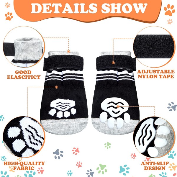 - Abundant Quantity to Use and Replace: you will receive 8 pairs(16 pieces in total) of dog socks in 2 different colors, black and gray, each color has 4 pairs (8 pieces), sufficient to meet your different use and replacement needs, and you can also share them with your good friends and family members, which will promote your relationships