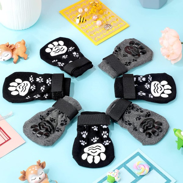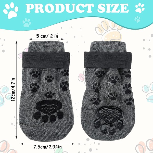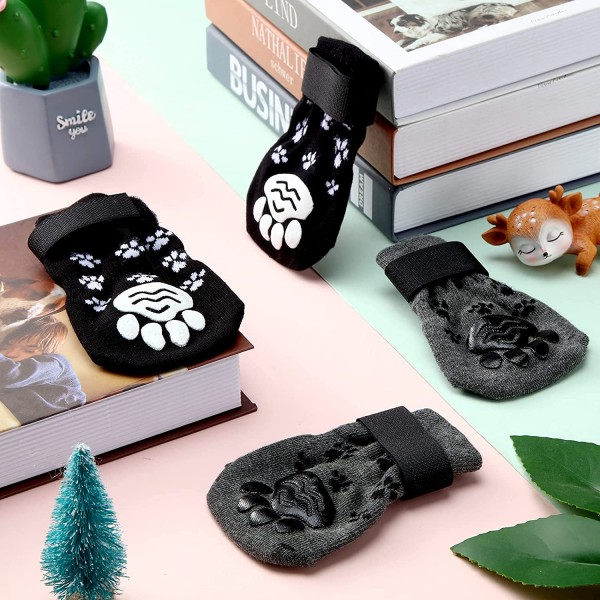 Anti Slip Dog Socks Non-Slip Dog Socks with Adjustable Strap Traction Control for Indoor on Hardwood Floor Wear (Black, Gray,S)