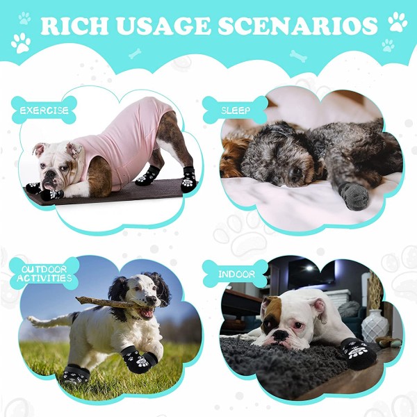 - Practical design: the elastic black buckle and handle design on this non-slip pet socks, making your pet's feet tightly wrapped by the socks, fixed on the pet's feet and never fall; In addition, non-slip silicone is printed on the sole to provide extra traction, prevent dogs from slipping and help them reduce their tendency to fall