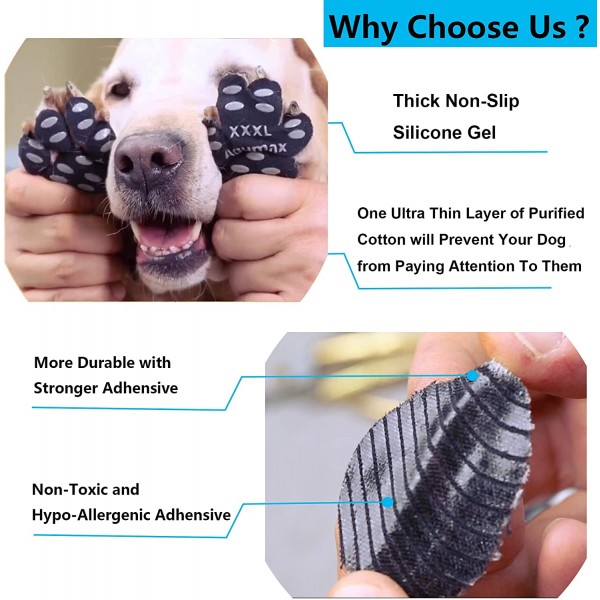 - Unlike other cheap products - more durable with stronger adhensive,Reliable non-slip silicone point to increase traction for each pad of dog paw.