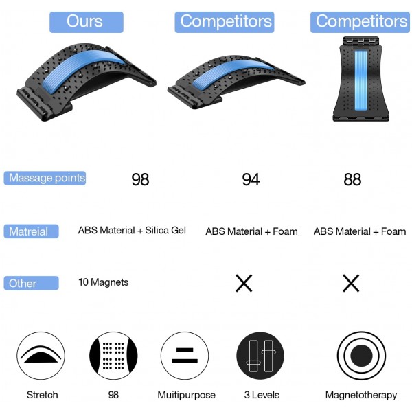 - Upgraded Back Stretcher : The back stretcher has 98 massage points, which work like acupuncture by pressing deeply on specific area, helping loosen up the tight muscles. The thickened design of the foam cushion provides maximum protection and comfort for the sensitive areas of the back spine.