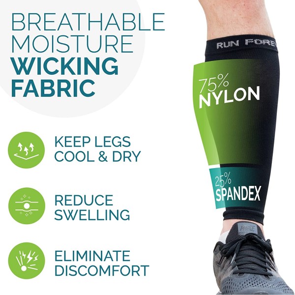 - High Quality & Durable: Run forever sports calf compression sleeves are made of compression fabric with a combination of 70% nylon and 30% spandex to form a stretchy, lightweight cover. perfect snug fit with anti slip cuff that can be washed multiple time without losing its compression.