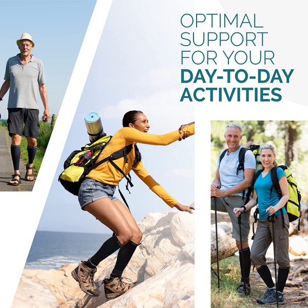 - Shin Splints & Leg Pain Relief Support: Our calf compression sleeves provide support for your ligaments, tendons and calf muscles, prevent ankle & leg swelling, and re-energize tired legs. footless compression sleeves also help reduce the risk of developing varicose veins, leg cramps, arthritis, pulled muscle, lymphedema, ease muscle soreness as well as leg fatigue.