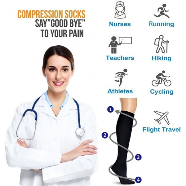 - IDEAL FOR SPORTS & DAILY WEAR - Reduces muscle fatigue, especially if on your feet for long periods of time, traveling or all sports e.g. cross fit, skiing, running, hiking and more. In daily life, perfect compression socks for runners, travelers, pregnant women, maternity, waitress...