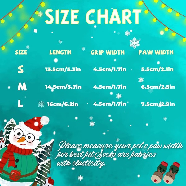 - COME IN 3 SIZES: Small girp width 1.7in, sock length 5.3in, paw width 2.1in. Medium girp width 1.7in, sock length 5.7in, paw width 2.5in. Large girp width 1.7in, sock length 6.2in, paw width 2.9in. Please measure your pet's paws carefully and choose the suitable one before ordering. If it is between the two sizes, it's better to choose the smaller size.