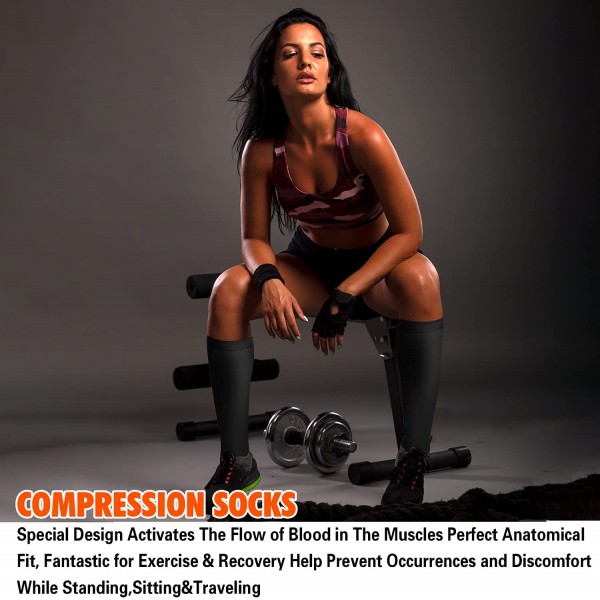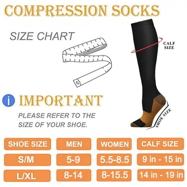 - UPGRADE MATERIAL - We carefully designed and manufactured our compression socks to provide premium support,comfort,and relief without compromising your mobility.Moisture wicking material is combined with copper ions, to ensure that your feet and legs remain cool and dry throughout the day and night. Comfortable wide top band prevents rolling gives you compression without sacrificing comfort,delivers 360-degree stretch for greater flexibility and durability, great for everyday use.