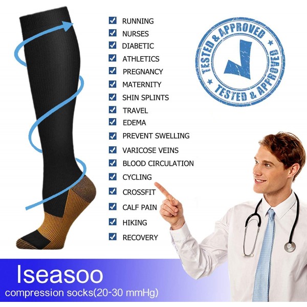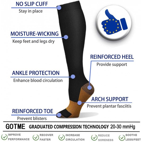 - UPGRADE YOUR COPPER COMPRESSION SOCKS DRAWER! - With all the tasks of work and family (and of life itself!) we may forget to pay attention to and maintain the health of our legs. Our compression socks are an effective way to promote better circulation and keep your healthy. By providing a mild squeezing action to support enhanced blood flow, more blood pumping means more energized legs and less pain + swelling.Which can help active people stay healthy and comfortable all day long.