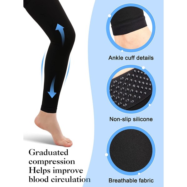 - Quality material: the footless compression stockings are made of soft and serviceable spandex, which allow your skin to breathe freely and are also suitable for strenuous exercise with air permeability and enough flexibility; Note: the size on the package is wrong, the package you receive will show the bigger size; Please check the real size on this page or in the picture