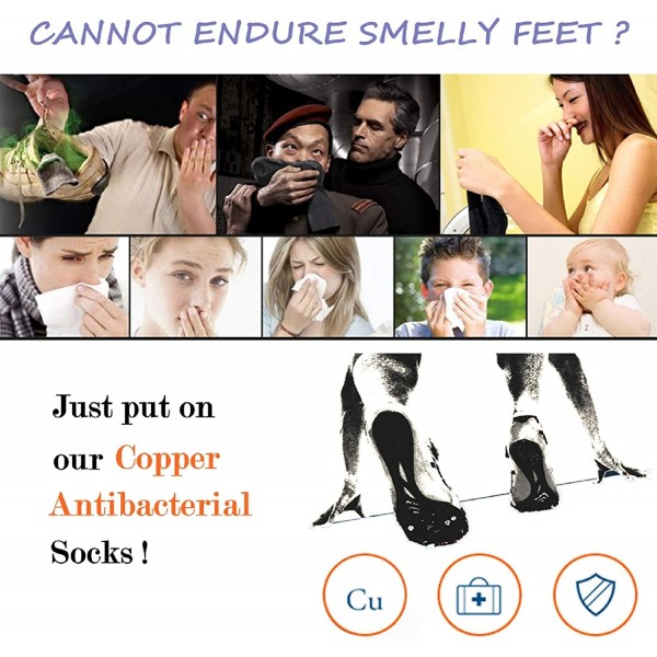 - KODAL COPPER INFUSED SMELL CONTROL SOCKS -- Made from 80% combed cotton, 20% copper infused yarn; The copper ions in the yarn will produce a natural protected area, eliminating 99% of the sweat and smell, which helps you to get rid of embarrassing smelly feet.