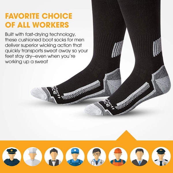 - SOFT & COMFORTABLE: Lightweight, fully cushioned men’s crew work socks keep your feet cool and comfortable all day