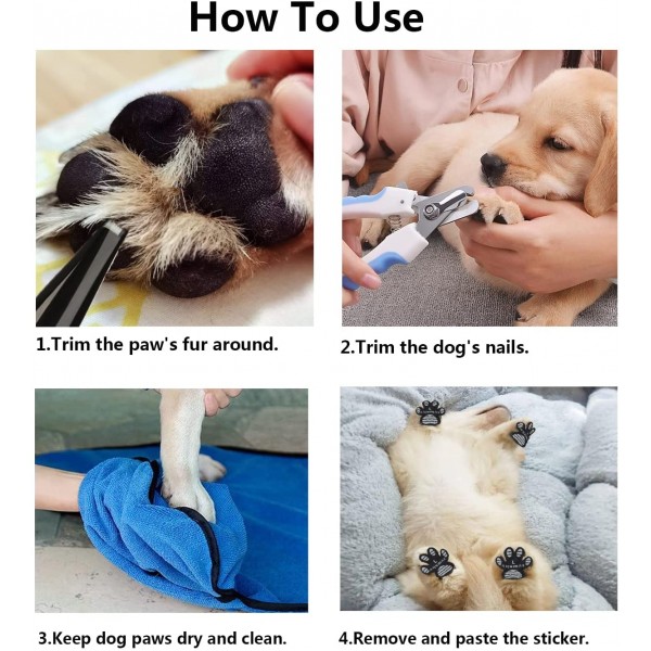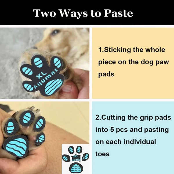 - Easy to Use - The grip pads are disposable & self adhesive.Trim your dog’s nails & hair between pads;Keep the dog feet clean and dry (can extend the use cycle of the traction pad);Remove the sticker and stick it on the paws.