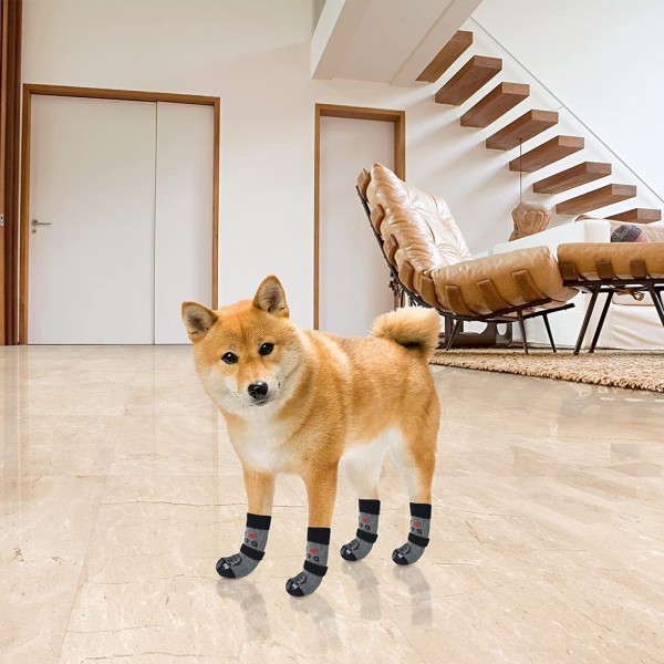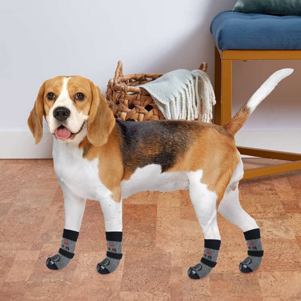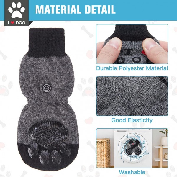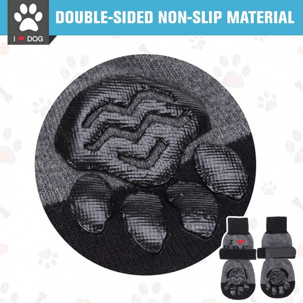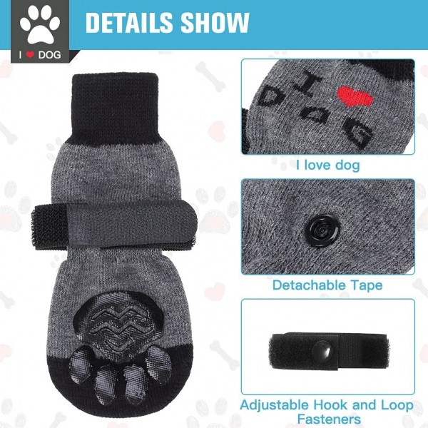 Dog Socks Anti Slip, "I LOVE DOG" Pattern, Comfortable Dog Paw Protectors with Adjustable Straps Traction Control for Hardwood Floor