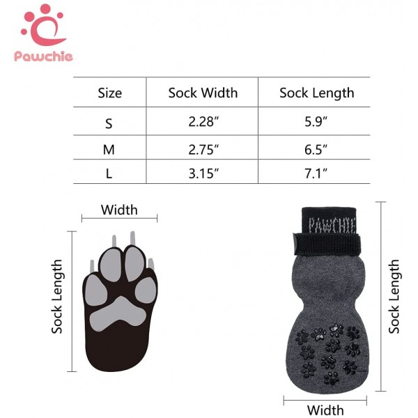 - S: Length 5.9 inches, Paw Width 2.28 inches. Dog socks should fit snugly, please choose a close size. If you are in between sizes choose the smaller size