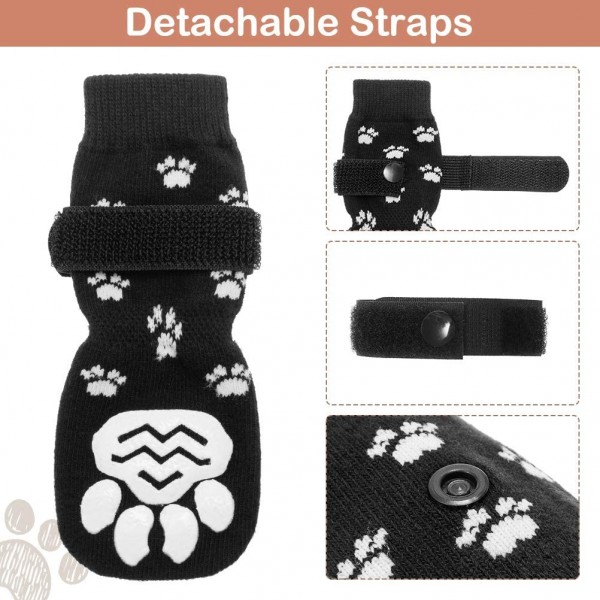 Double Side Anti-Slip Dog Socks with Straps, Soft Comfortable Pet Paw Protectors for Indoor Hardwood Floor Traction Control