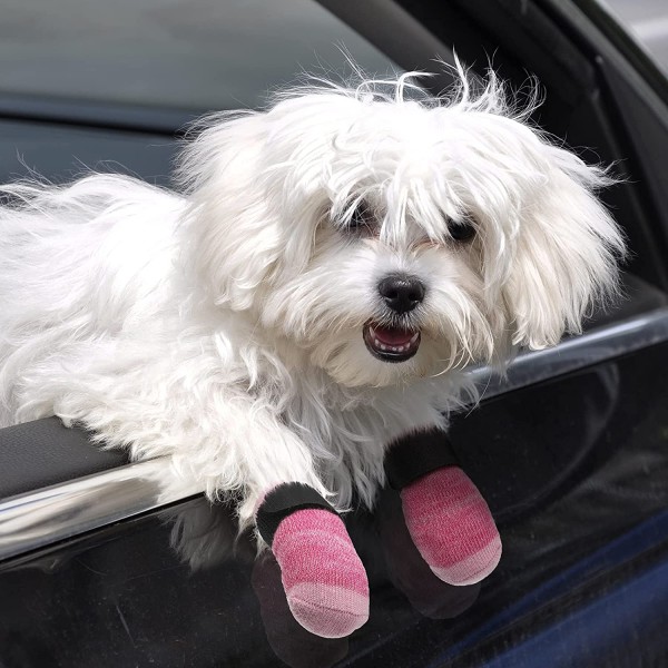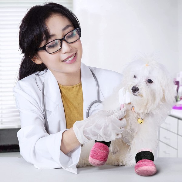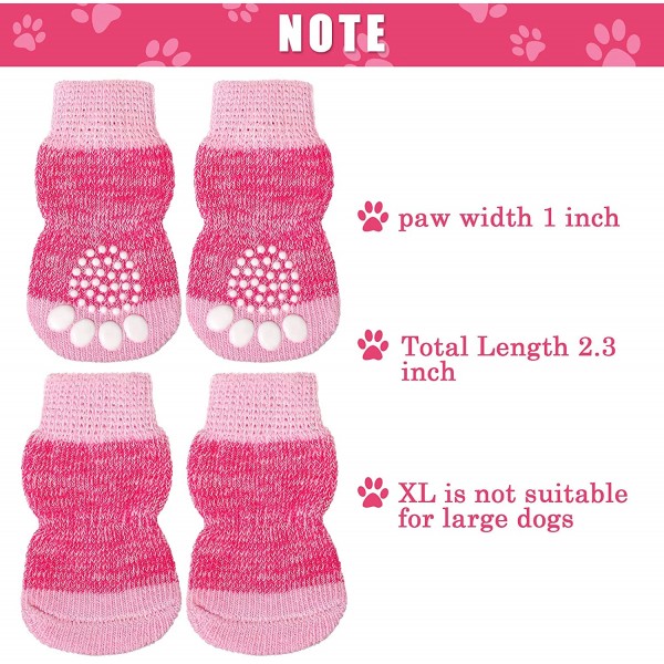 Frienda Dog Socks Pet Knit Socks Anti-Slip Cat Socks Adjustable Paw Protector for Small Puppies and Kittens Traction Control (Pink,S)