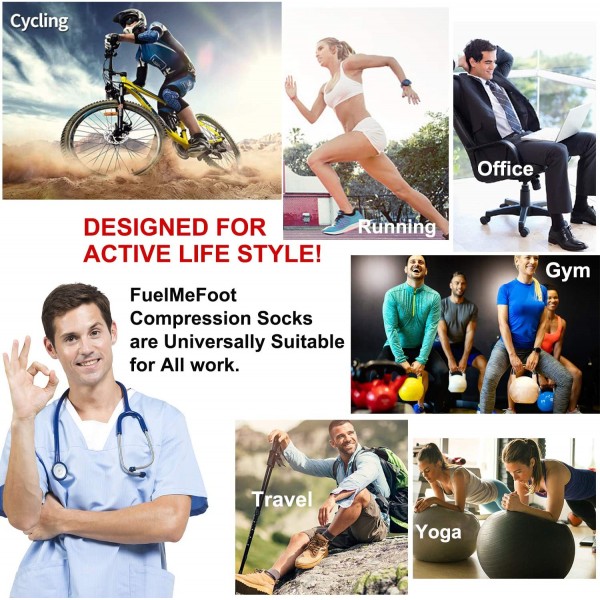 - REDUCE INJURIES - Provide mild squeezing for warmness and enhance blood moving through your legs. Remove stress and stimulate every cell, relieves symptoms varicose veins and excess fluid retention. Help relieve pain & discomfort related to plantar fasciitis, Provides true graduated compression to support your legs, reduce fatigue, soreness, cramping and prevent injuries at the same time.