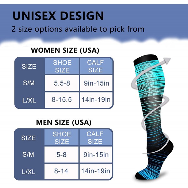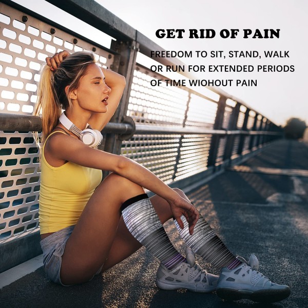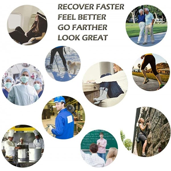 - 【COMPRESSION THERAPY】-- Provide Mild Squeezing for warmness and enhance blood moving through your legs. Remove stress and stimulate every cell, relieve symptoms varicose veins and excess fluid retention. Help relieve pain & discomfort related to plantar fasciitis. Provide true graduated compression to support your legs, reduce fatigue, soreness, cramping and prevent injuries at the same time.