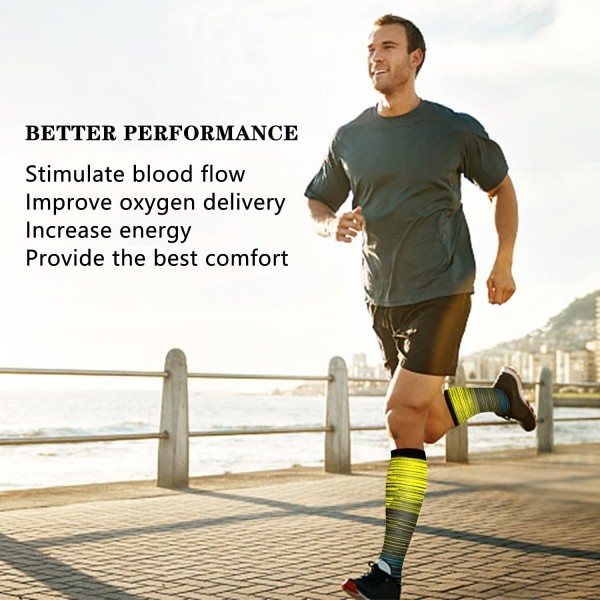 - 【HIGH QUALITY AND COMFORT】-- Our compression socks fit closely from your toe to leg, energize your skin. They are applied integration comfortable breathable and quick-drying fabric, reduce muscle soreness, thus feel the immediate comfort. We thicker ankle fabric area, more compact compressed weave, reduce muscle vibration and fatigue to prevent sprained ankle. Cushioning between your toes is seamless, widening and thickening. Use it every day, night or both.