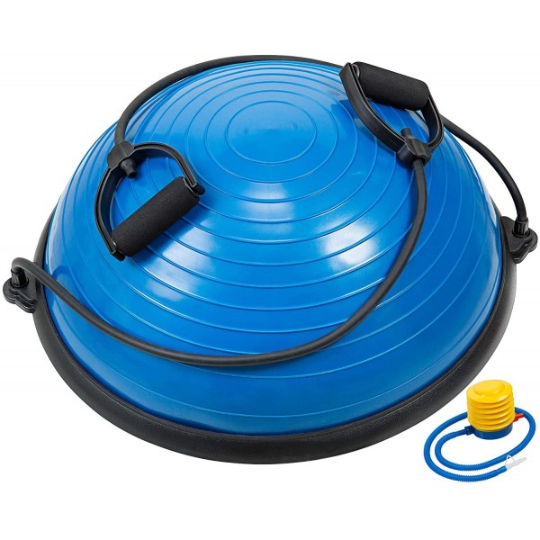 - BALL PUMP INCLUDED: A complete combo, this half-dome stability ball comes with a complimentary foot pump that makes it easy to get fully inflated to 9.8” in under 5 minutes. The ball’s high-quality air valve prevents air leakage and extends service life.