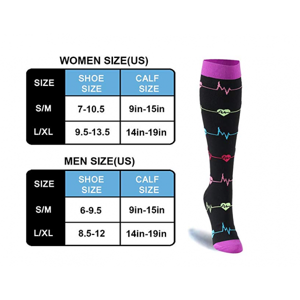 * COMPRESSION SOCKS- Our compression socks (20-30 mmHg) are recommended by doctors and preferred by trainers. Compression stockings create the highest support pressure at the ankle and gradually decrease along the legs, improving blood circulation and relieving leg pain. breathable high performance fabric keeps an optimal temperature. Bacteria and moisture for maximum level of comfort. Ideal for people who are sitting for long periods of time during a trip or work.