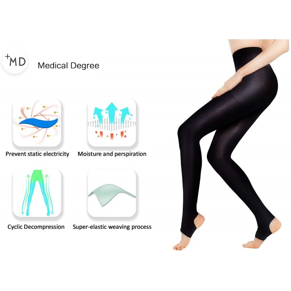 +MD 15-20mmHg Women's Open Toe Compression Pantyhose Stirrup Medical Quality Compressive Stocking Blacks/M