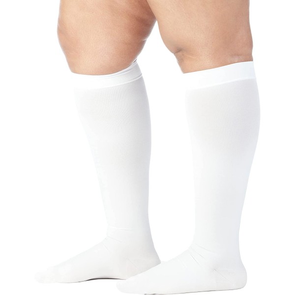 Mojo Compression Socks 2XL Made in USA 20-30mmHg - Opaque Knee-Hi - Closed Toe Varicose Vein Support Socks for Women - Compression Stockings Men – White XX-Large