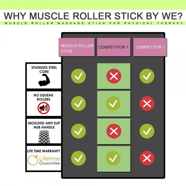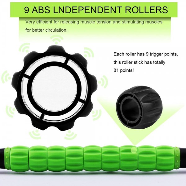 UNMATCHED QUALITY - This 18” massage roller stick has 9 reinforced plastic gears that loosen pressure and trigger points to instantly relieve pain and soreness, increase mobility, and help prevent injury while working out.