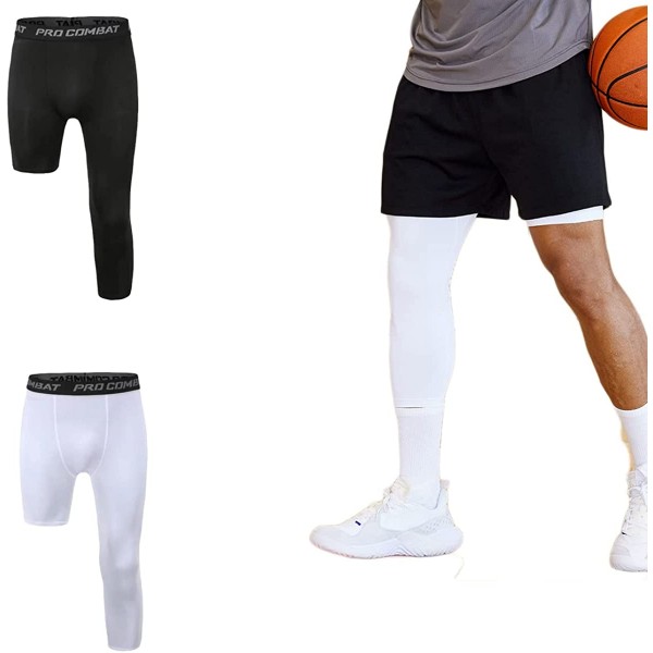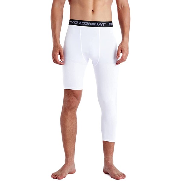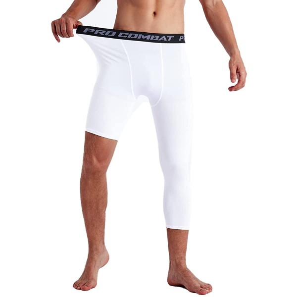 One Leg Compression Pants, Men's 3/4 One Leg Compression Capri Tights Pants Athletic Base Layer Underwear