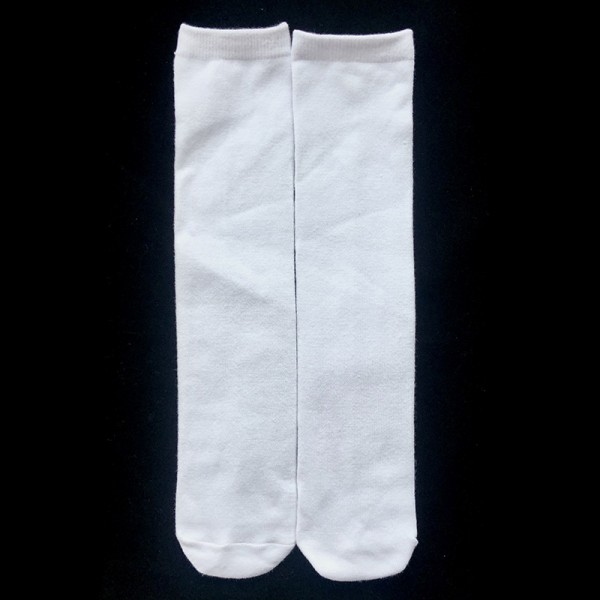 Fully printable All white socks. Ideal for all over dye sublimation printing and recommended style for street-wear or casual wear! Has a medium, even thickness throughout the sock, breath-ability and vibrancy in print throughout. Definitely the best all over sublimated sock in the market today! Printable area of each sock when stretched onto a Jig and ready to print W x H: Small: 3.5" x 16"Medium: 4" x 18"Large: 4.25" x 19"XL: 4.25" x 20"