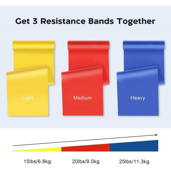 - Portable and Durable: each band measures 59inch Long x 5.9inch wide, durable, elastic, lightweight and portable, which works well in Gym, office or at home.