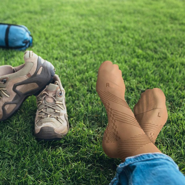- THOUGHTFUL FEATURES: GRADUATED COMPRESSION Foot Socks Designed with a Slightly FLARED RELAXED TOP for Easy Dressing. ANATOMICALLY CORRECT LEFT and RIGHT FOOT Closed Toe Design without Cushioning Provide Unique SECOND SKIN FIT.