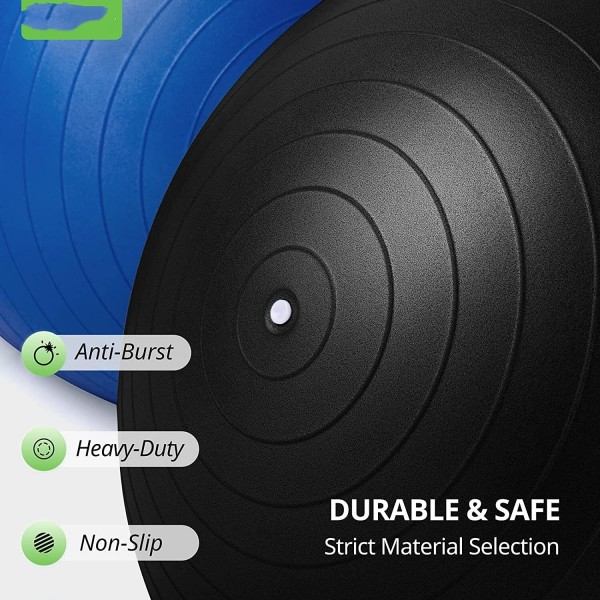 - EXTRA THICK AND ANTI-BURST: one of the highest density exercise balls in the market. 2000 micrometers in thickness and can resist up to 2200 lbs.