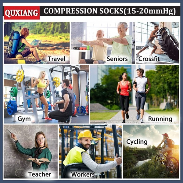 - COMPRESSION BENEFITS - QUXIANG Compression socks are designed to promote blood circulation and oxygen flow preventing fatigue and helps in muscle recovery. Whether you are an athlete, sportsperson, teacher, flight crew, receptionist, office worker, pregnant, recovering patient, nurturing mother, elderly, our socks are universally suitable for all work.