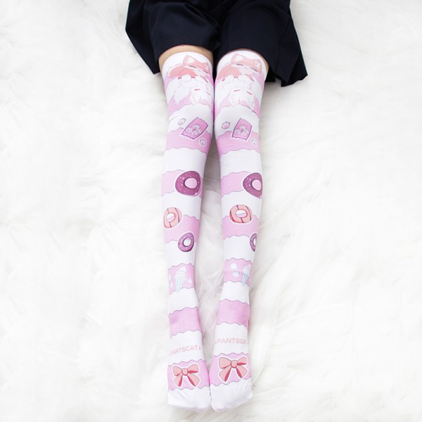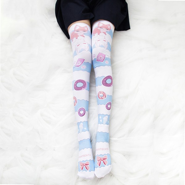 Wholesale 360 Printing Lovely Foxes Animal Thigh High Women Socks