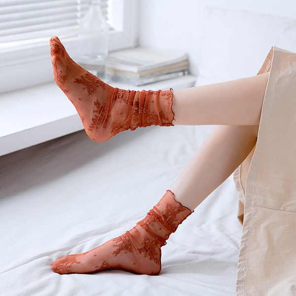 Wholesale Women Fashion Thin Mesh Lace Acrylic Crew Socks