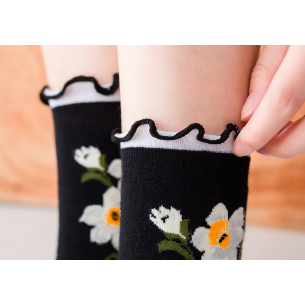 Women Retro Socks Women Flower Jacquard Retro Crew Socks